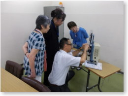 パワーポイント資料を使って、映写機の種類や仕組みについて説明するとともに、16ミリ映写機で「フィルムの取扱い」を上映したことで映写機の映像や音の出る構造やフィルムの構造について理解していただきました。また、映写機やフィルムの取扱いの説明においては、職員が16ミリ映写機の操作実演を行い、フィルムの丁寧な扱い方、16ミリフィルムの装填の仕方、巻き戻しの仕方等について具体的に学んでいただくことができました。