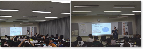 | 福岡県政出前講座から、福岡県環境部循環型社会推進課の小澤七瀬先生と吉本萌香先生を講師にお招きして、食品ロスや3Rについての講座を行いました。食品ロスの講座では、食品ロスを出さないために、残さず食べることや食材は必要な分だけ買うことを教えていただきました。また、3Rの講座では、リデュース(ごみの量を減らす)・リユース(繰り返し使う)・リサイクル(資源としてまた使う)の方法について具体的な例を教えていただきました。最後は、自宅に帰って頑張る目標を一人ひとり立てることができました。 |