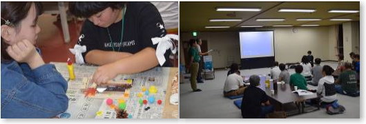 和き・合い・愛ファミリーキャンプ1日目の最後の活動は、親子で別れての活動です。子どもたちは、フォトフレームづくりを行いました。テーマは「秋」で、創意工夫しながら紅葉やビーズ等をフレームに飾り付け、思い出の詰まった写真を入れて、個性溢れるフォトフレームが出来上がりました。