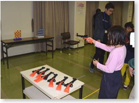 射的や弓矢などのゲームを、スタンプラリー方式で楽しみました。