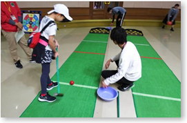 「ターゲットゲーム」「スカットボール」「ボウリング」「輪投げ」「ドッチビー」の5種目を体験しました。