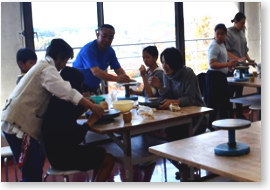 夕食はバイキング方式です。苦手な食べ物にもチャレンジするいい機会でした。