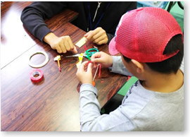 ピーピーと音の鳴る「竹笛」と、割り箸を使った「ガリガリプロペラ」を作りました。