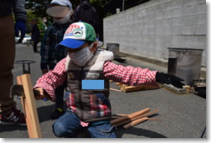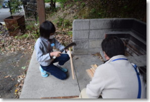 子どもには「薪割り」は少し難しいと思いましたが、しっかりとできていました。 |