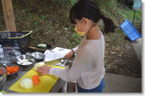 | 県内の青少年(高校生以下)とその家族を対象に、自然環境の中、家族で調理することを通じて、家族の絆を深め、調理する喜びや楽しさを味わう機会を提供することにより、体験活動の普及・啓発を図る。 |