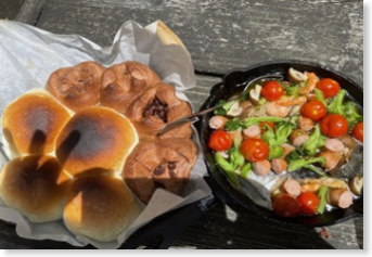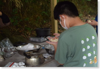 パン作りは「こねる工程が肝心」ということで、とても大変なクッキングでしたが、家族みんなで励まし合ったり交代したりして楽しそうに取り組む姿がとてもよかったです。どの家族も「おいしいパンを作る」という目標をもって、初めての体験にも恐れず積極的に挑戦していました。パンをちょっぴり焦がしてしまった家族もありましたが、ふっくらおいしいパンとアヒージョに満足していました。第3回でも参加されるご家族にアウトドアクッキングをとおして、多くの学びとおいしい体験をしてもらえるように準備をしていきたいと思います。