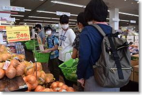 1日目の午後に参加児童・生徒が集まり、買物体験からスタートしました。参加者に与えられたミッションは、カレーライスづくりに必要な食材等を与えられた金額で収まるように買うことです。会場のクリエイト篠栗からマルキョウ篠栗店までは数百メートルほどの距離ですが、往路と復路とでルートを変え、フォトラリー形式で児童・生徒が飽きないように配慮しました。