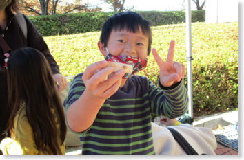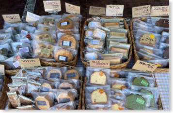 正面玄関前では「桂木とくのみ園」「セルプ清浄」「篠栗町観光協会」に出店していただきました。パンやチーズケーキ、お米や野菜、篠栗町の物産などの販売がありました。