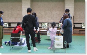 県立スポーツ科学情報センターの方々にご協力いただき、大人から子どもまで多くの方の骨密度を測定していただきました。