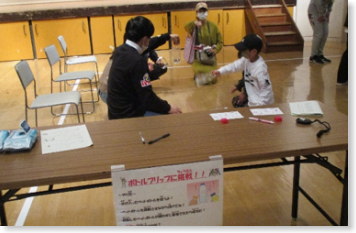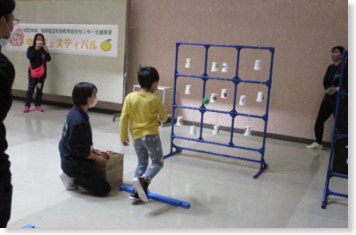 九州共立大学の学生の皆さんのブースです。パラスポーツ「ボッチャ」やコンビネーションゲームにチャレンジしました。