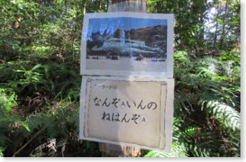 施設の裏山を探検しました。道の途中に篠栗の地域のクイズがあります。正解にたどり着いたかな?
