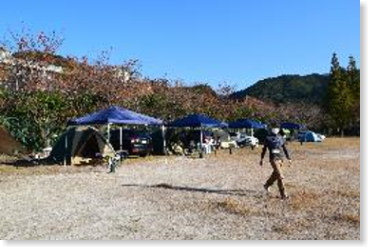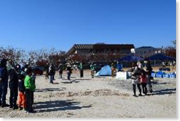 <1日目:はじめのつどい> 雲一つないすっきりとした秋空の下、「ファミリーキャンプ基礎講座」第2回はスタートしました。今回も九州共立大学 助教 花田 道子先生に御助言、御指導いただきながら実施しました。