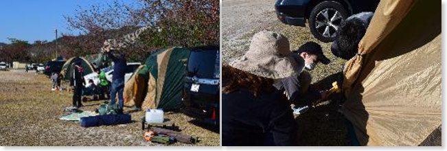 - 初めて自分たちで購入したテントを持参しました。説明書を見ても建て方がわからない中、すかさずサポートの手が入って、とてもありがたかったです。自分たちでいきなりキャンプをするより、このように学習を積んだ上で次回に望めることをうれしく思います