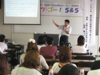 | レッツ・ゴー!5&5 スタート | 今年度の「レッツ・ゴー!5&5」がスタートしました。この事業は、小学4・5年生と年長児(5歳児)による異年齢集団が、自然体験や宿泊体験等さまざまな体験活動をシリーズで行います。これらの活動を通して、子どもたちに困難を乗り越える力や人と関わる力等の育成をめざしています。 今年度は、2つのグループで実施します。(Aグループは9月3日(土)に、Bグループは9月10日(土)にスタートしました。) 第1回は、はじまりの会とおわりの会以外は、子どもと保護者に別れて活動を行いました。子どもプログラムでは、ボランティアを含めたスタッフ支援のもと、出会いのレクリエーションやオリジナルフラッグ作りをしました。小学生が年長児の活動をサポートする姿もさっそく見られました。また、保護者プログラムでは、近畿大学九州短期大学の鐘ヶ江淳一教授をお招きし、「ワクワク・ドキドキ、異年齢の体験活動で育つこと」という演題でしていただきました。そして、保護者懇談会「親の本音トーク」では、子育てに関する話題で大いに盛り上がりました。 第2回は米の山登山を行う予定です。Aグループが10月15日(土)〜16日(日)に、Bグループが10月8日(土)と10月29日(土)〜30日(日)に行います。 | | Aグループ | |  |  |  |  | | ↑テーマソングに合わせて踊ろう | ↑フラッグ作り | ↑フラッグ作り | ↑フラッグ作り |  |  |  |  | | ↑フラッグ作り | ↑懇談会 | ↑参加者の笑顔 |  |  |  |  | | ↑自己紹介 | ↑自己紹介 | ↑自己紹介 | ↑出会いのレク |  | ←集合写真 クリックすると大きくなります。 | | | | Bグループ | |  |  |  |  | | ↑テーマソングに合わせて踊ろう | ↑はじまりの会 | ↑フラッグ作り |  |  |  |  | | ↑フラッグ作り | ↑講演会 |  |  |  |  | | ↑懇談会 | ↑参加者の笑顔 | ↑自己紹介 |  |  |  | | | ↑自己紹介 | ↑ 出会いのレク | |  | ←集合写真 クリックすると大きくなります。 | | | |