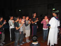野外炊飯での薪わり、かまど係の仕事、キャンドルの集いでの誓いの言葉やレクリエーションが楽しかったです。 |