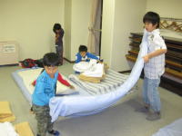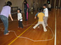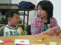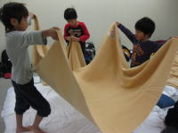 2日目の雨天プログラムで、切り紙やロープを使っての遊びがおもしろかったです。 |