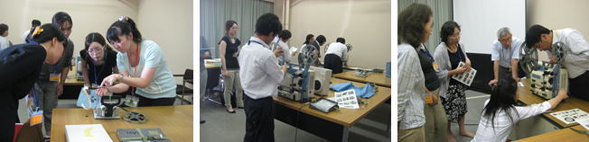 | 映写機を実際に操作する練習を行い、その後、簡単な実技テストを行いました。 |