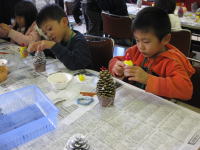 12月3日(土)〜4日(日)に、第4回レッツ・ゴー!5&5(Bグループ)を開催しました。今回は、国立夜須高原青少年自然の家での1泊2日のプログラムです。 まず、自然の家の館内探検をしました。各グループでフォトファイルを見ながら、館内の至る所を見て回りました。この活動を通して、広い自然の家の配置がよく分かりました。続いて、大きな松ぼっくりを材料として、クリスマスツリーを作りました。金や銀などカラフルに着色した松ぼっくりに、キラキラのビーズをつけたり、ラメ入りのペンで飾りをつけたりしました。年長児の子どもたちは、小学生に負けないほどの上手な作品を作ることができました。夜の活動は、小学生は次回のおやつ作りの計画を立て、年長児は大きな画用紙にのびのびと絵を描きました。 次の日は、好天に恵まれました。そんな中、朝から夜須高原記念の森に向けてハイキングに出かけました。森の中を歩きながら、風の音や鳥のさえずりを聞くことができました。記念の森では、迷路をして遊んだり、真っ赤なもみじの木の下で記念写真を撮ったりしました。たいへん気持ちのよい活動になりました。 第5回は、来年1月28日(土)に県立社会教育総合センターで行います。いよいよ最終回「さよなら5&5」です。 |