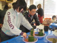 | ものづくり体験事業 | | 12月18日(日)に当社会教育総合センターでは、「ミニ門松づくり体験塾」を実施しました。 当センター学習ボランティア「若杉の会」の協力のもと、午前19グループ60名、午後19グループ60名が、ミニ門松づくりを体験しました。 のこぎりで竹を切るのに苦労したグループもありましたが、みんなで協力しながらとても楽しそうに活動を行っていました。 新しい年に思いを込めて、世界でたった一つの「ミニ門松」が完成しました。 みなさん良いお正月を迎えられることと思います。 ご参加いただいた皆様、ありがとうございました。