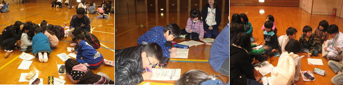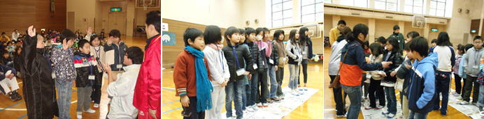閉塾式・・・1泊2日の「ワクドキウインター楽習塾」をふりかえって、がんばったことや心に残ったことを書きました。それぞれの班長さんには、みんなの前で発表をしてもらいました。
