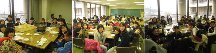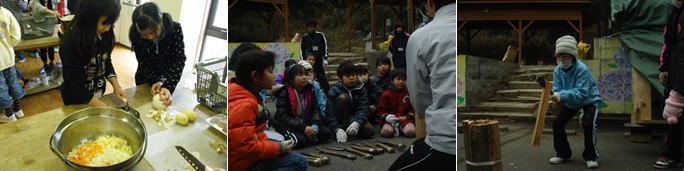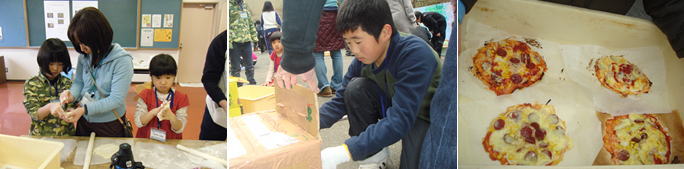 ウィンタークッキング・・・前日に決めた係りごとに分かれて、ピザとシチュー、ダンボールオーブンを作りました。どの班もおいしいピザとシチューが出来上がりました! |