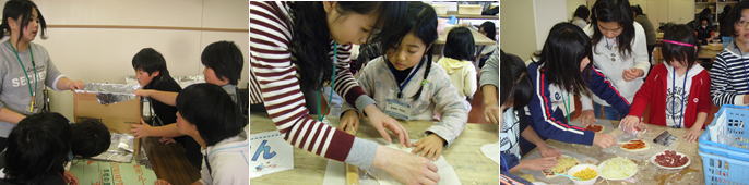 2月5日(日)は、手作りピザをダンボールオーブンで焼き、シチューを作りました。それぞれ班のみんなで協力して、おいしいピザとシチューができあがりました。
