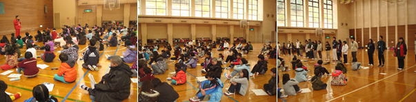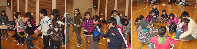ウィンターオリンピック・・・選手宣誓、自己紹介ゲーム、並び替えゲーム、輪くぐりをしました。少しずつ班のみんなと打ち解けて、仲良くゲームを楽しみました。 |