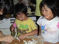 お昼ごはんのおにぎりをにぎっています。さあ何個食べようかな?