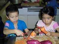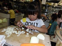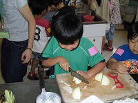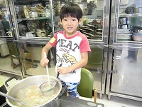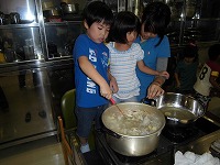 ↑みんなで協力して、ごはんと豚汁を作りました。自分たちでつくった豚汁は最高でした!