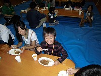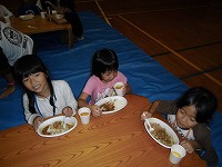 | 当センター職員お手製のおいしいカレーを食べました!たくさん歩いた後だったので、大きな鍋いっぱいにあったカレーも、みんなでペロリと食べてしまいました! |