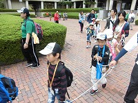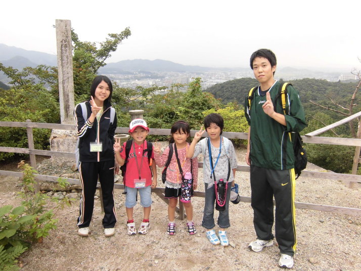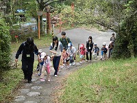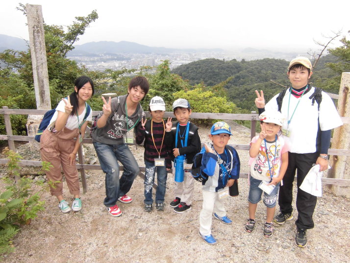 | 台風の影響で、どんよりと曇り空の下でのハイキングになりましたが、にこにこキッズは元気いっぱい!長い距離も、山道も急なくだり坂も、みんな最後まであきらめないで歩くことができました。 |