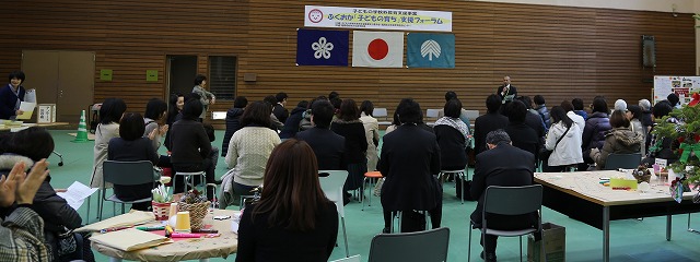 | 親、学校・園、地域、行政、NPO、企業等、「福岡がめざす子ども」の育成に携わる支援者が集い、様々な実践の交流を通して、今後の家庭教育・子育て支援の在り方を考えるフォーラムを開催しました。 |