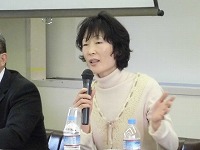 | 最後に後援を頂いた九州大学より、社会教育主事講習九州大学会場の主任講師の岡幸江先生からも研修会の感想、参加者にむけて応援の言葉をいただきました。 |