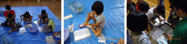| 2回目、3回目の食事の際につかう、箸置きを作りました。みんなそれぞれ素敵な箸置きができました。次回のできあがりをお楽しみに! |