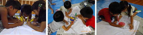 | それぞれの組の旗をつくりました。同じ組のお友だちと相談しながら、最後まで丁寧に色を塗ることができました。この旗と一緒にこれからの『にこにこキッズ!体験塾』をがんばりましょう! |