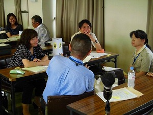 2つのテーマで協議していきました。まず最初は、インタビュー・ダイアローグを聞いて、自分が学んだ事、社会教育・