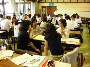 生涯学習事業を進めていく上で大切だと思うことについて交流し、今後どう生かしていきたいかということについてを話し合いました。次に、各自が既に実施した事業や実施予定の事業について、報告や紹介をしながら、お互いに改善点などを話し合いました。