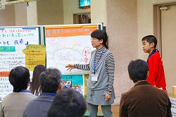 子どもたちの実体験を促進する多様な活動プログラムの開発と普及をめざしています。子どもの成長における体験活動の重要性、松ぼっくりを使ったクリスマスツリー作りの紹介を行いました。 |