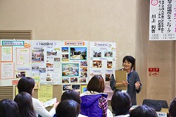 講演では、子育て応援サイトの運営のみならず、学生からシニア世代まで多様なボランティアに支えられた、地域に根ざした幅広い子育て支援活動についてお話をしていただきました。 |