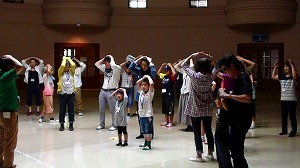 出会いのつどいでは、レクレーションをしながら緊張をほぐし、家族ごとに自己紹介をしました。「お呼び出しゲーム」では、「このキャンプ頑張ろうと思っている人」の呼び出しに、みんながハイタッチをしに来てくれました。