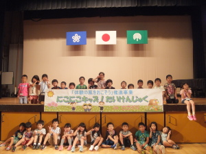 はじめまして!緊張しているお友達もいるので、まずはレクリエーションからです。これからにこにこキッズの仲間として仲良く最後まで頑張りましょう。 |