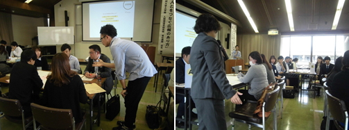 ↑演習の様子@(テーマについて考える) ↑演習の様子A(個人の考えを発表)