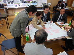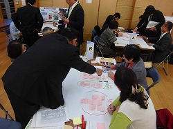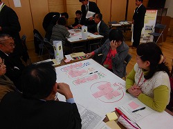 | ※ 説明 フィールドワークをもとに、「人々がつながり地域住民がいきいきと活動する事業を行うために必要なこと」についてグループで熟議をおこないました。 |
