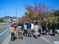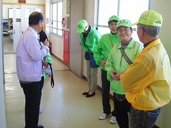 ○ コスモスロードで、地域環境づくりに励まれているグループの様子を見学し、代表の方から話を聞きました。