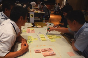 | グループ協議は、1グループ3〜4名のグループで、本日の研修会の感想や参考になった点、課題だと思っていることを交流し、自分の最重要課題を選びアドバイスをもらうという活動を行いました。情報交換をし、アドバイスをもらう中で、自分の考えを整理することができ、他の委員さんの実践活動も参考にしながら、明日からの地域活動の「一歩」を踏み出すヒントが得られたようでした。 |