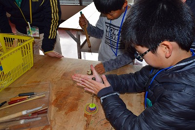 今回は二本立ての活動となりました。どちらの活動も意欲的に取り組むことができました。お互いアメを交換して食べたり、作ったコマで遊んだり、子ども達はかなり打ち解けた様子でした。次回は最終回です。参加お待ちしています.