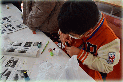マニキュアの膜を張る作業が難しく、苦戦する子どもが多かったように見られます。一度コツを掴んだ子どもは作業が速く、時間内に13個作った子どももいました。基本となる花作りだけでなく、指輪を作ったり、花弁の数を増やしてみたりと、子ども達の独創性溢れる活動となりました。また、子どもたち同士でマニキュアの貸し借りをするなど、、参加者同士のコミュニケーションも多くみられました。花作りがメインの活動となり、男性の参加者が楽しめるかといった不安もありましたが、未体験の創作活動に夢中で取り組む姿をみることができ、良かったです。