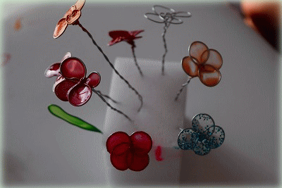 第6回目はマニキュアフラワーづくりです。子どもの手でも作業しやすい0.45mmの針金を使って花を作り、花弁部にマニキュアで膜を張って乾かします。持ち寄った様々な色のマニキュアを使うことで、色とりどりの花の束を作ることができました。