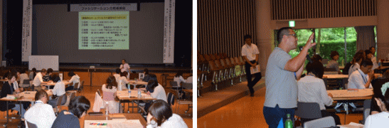 研修1では、講師の加留部先生より、ファシリテーションの必要性や概論について御講義いただきました。