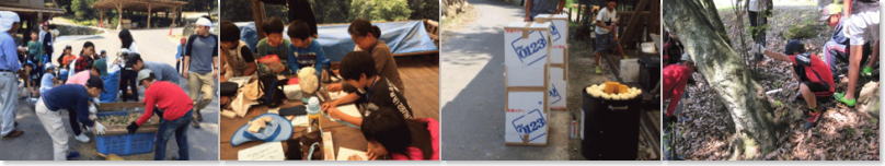 レッツ!サーチ!もいよいよ、第3日目を迎えました。本日の活動場所は豊前「森の学校」です。ここでは、里山を守るための環境保全について学習しました。雑木の下枝を切り、粉砕機にかけウッドチップに加工していく一連の作業を体験し、自然を守ることの大切さと、本来は捨てる物を再利用していくという循環型社会の実現への視点を学ぶことができました。他にも、燻製体験もしました。真剣な表情で奮闘する様子がよく伝わってきます。